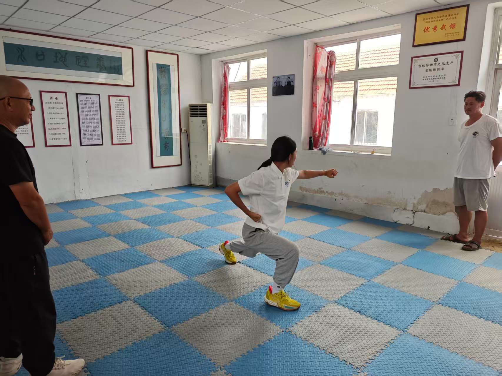 隨后,團隊師生與地蹚拳第七代傳人宋青春展開座談,詢問武術傳承與老屋保護的內在聯系,其中一位有武術基礎的隊員還參與到拳術展示中,在互動中感受傳統文化與鄉土載體的緊密關聯,為后續保護思路提供多元視角。