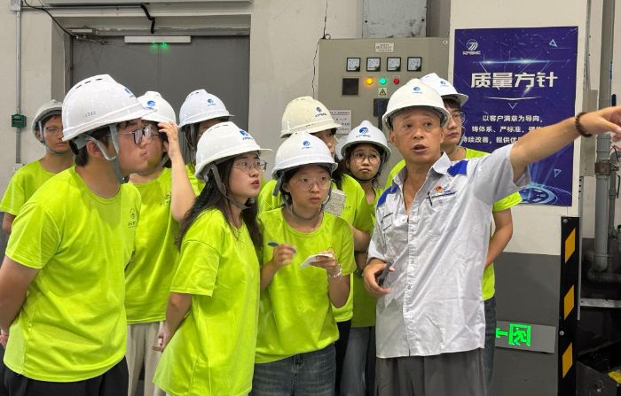 圖為華域皮爾博格有限公司負責人向實踐團介紹工廠生產線。孔雅琪 供圖