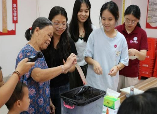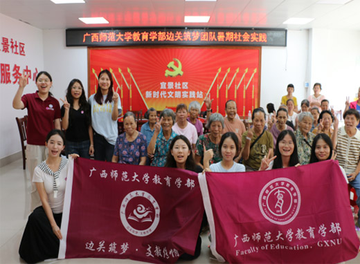 從非遺漆扇里的文化傳承,到《清肺拍拍操》中的健康守護,再到《唄儂情深》歌聲蘊含里的民族團結內涵,本次實踐活動以居民喜聞樂見的形式,將文化、健康與團結的種子播撒在宜景社區的土壤中。這不僅是廣西師范大學教育學部青年學子踐行“服務社會、助力邊疆”的生動實踐,更以青春之力搭建起各民族交往交流交融的橋梁,為鑄牢中華民族共同體意識、推動邊疆民族地區和諧發展注入了持久活力,彰顯了新時代青年在民族復興征程中扎根基層、服務人民的責任與擔當。