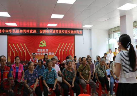 宜景社區作為寧明縣易地搬遷安置點,于2018年建成,集中了來自全縣8個鄉鎮的663戶、2467名搬遷群眾,民族成分豐富,同時也是崇左市各族群眾互嵌式發展計劃示范點,在促進各民族交往交流交融中發揮重要作用。服務團緊扣鑄牢中華民族共同體意識主線,結合社區實際開展系列活動,既強化居民對“中華民族一家親”的認同,也通過在地化、適老化服務提升社區幸福感,更在實踐中深化了團隊服務邊疆的初心。本次活動以三大核心環節展開,將非遺文化傳承、心理健康教育與民族團結宣講深度融合。