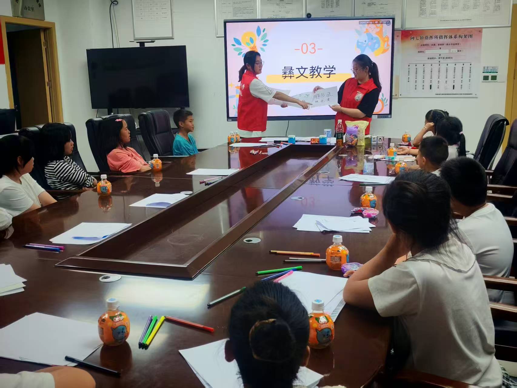 為調動小朋友們的學習熱情,實踐團隊通過趣味形式,讓他們在愉快的氛圍中學習。實踐隊員們與小朋友們共同繪畫自我,用畫畫的形式拉近彼此間的距離,了解彼此內心的真實想法,表達個性追求;通過趣味故事,傳遞生活中的小道理;“因地制宜”和小朋友一起探討彝族文化,學習彝族特有文字彝文并理解其漢語意義。