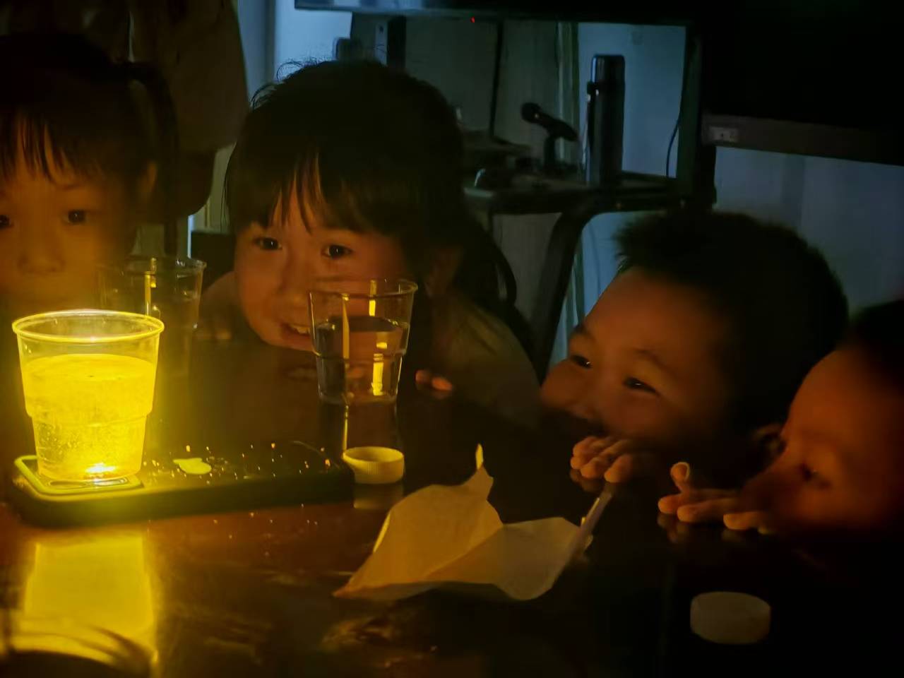 圖為實踐團帶領小朋友進行“螢火流星雨”小實驗 易興瑩 攝
