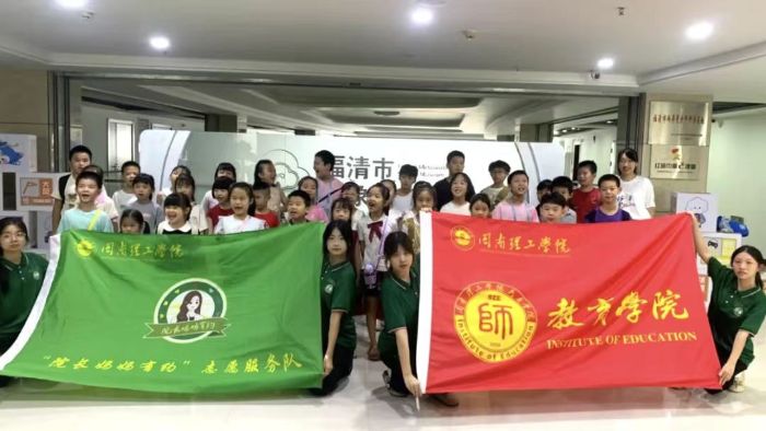 圖為“院長媽媽有約”社會實踐科普隊與市行政中心暑托班小朋友們的合照。吳羽彤供圖