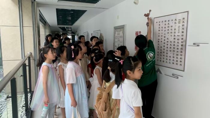 圖為“院長媽媽有約”社會實踐科普隊員為小朋友科普銅烏相風(fēng)。林欣妍供圖