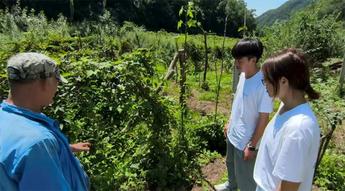 在調研期間,團隊成員跟隨保護區(qū)內農(nóng)戶,深入保護區(qū)進行實地考察,詳細了解了當?shù)剞r(nóng)民的生產(chǎn)生活狀況以及當?shù)厮幉漠a(chǎn)業(yè)的發(fā)展情況。當?shù)卮迕駨埓鬆斕孤实馗嬖V隊員,由于相關政策的實施以及勞動力資源的減少,實際耕種面積有所縮減,農(nóng)民們大多依靠上山采藥或在自家附近種植藥材來維持生計。目前正值五味子收獲的季節(jié),如果維護和管理得當,每年兩畝地可獲得約一萬五千元的收入。