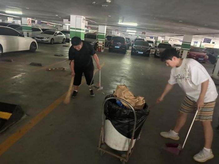 圖為實踐成員清理地下停車場 許楠攝