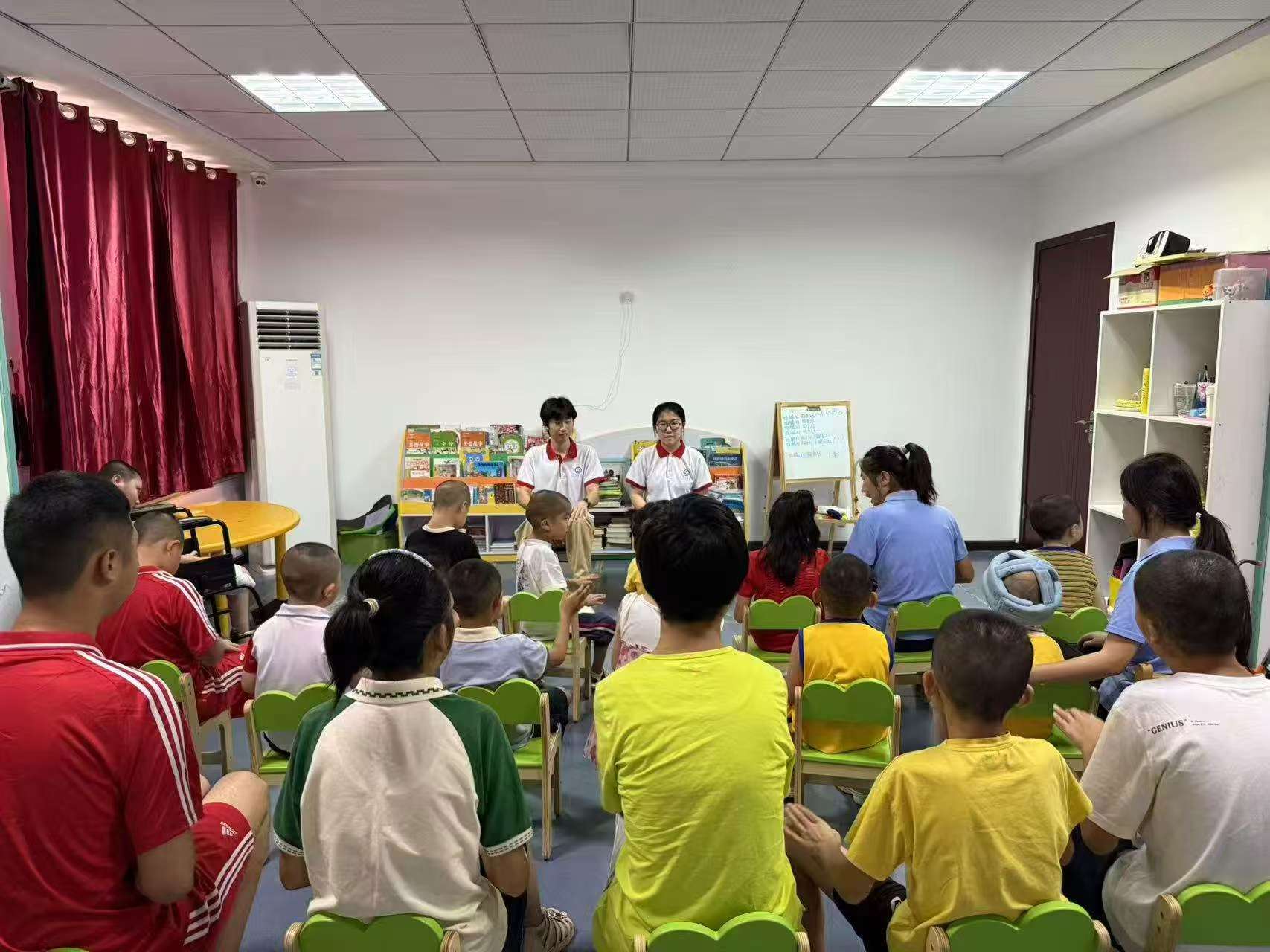 活動中,“予光同行”實踐隊分為小學組和特教組兩個小分隊,本著“心系未來人,情系孤殘兒童”的原則,結合孩子們的身心發展特點和實際情況,小學組開設了心理疏導、課業輔導、繪畫、體育游戲活動等多項課程,在課程與活動中給孩子們帶去知識與關愛,陪伴孩子們度過了一段快樂而有意義的時光。同時,整理福利院的工作也有序開展。實踐隊員們忙碌的身影穿梭在各個角落,整理教室、打掃衛生、擺放物品,讓福利院煥然一新。他們用汗水為孩子們營造了一個更加整潔舒適的生活環境。“予光同行”實踐隊員們用行動編織愛的紐帶,在陰雨中為孝感市兒童福利院的孩子們撐起了一片溫暖的晴空,讓愛的種子在孩子們心中生根發芽。