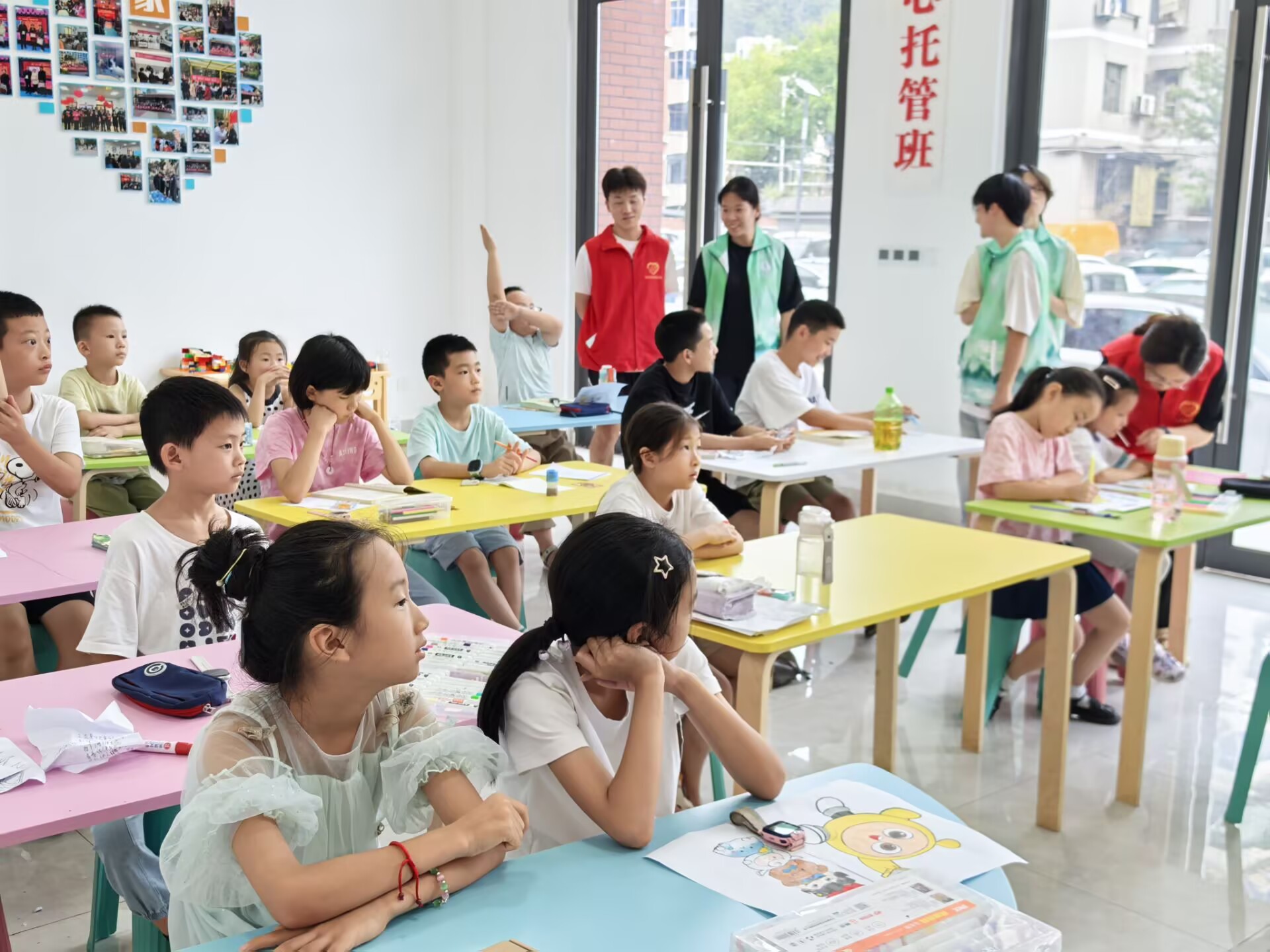 圖為托管班的孩子正在積極回答問題與志愿者互動。安書鑫 供圖