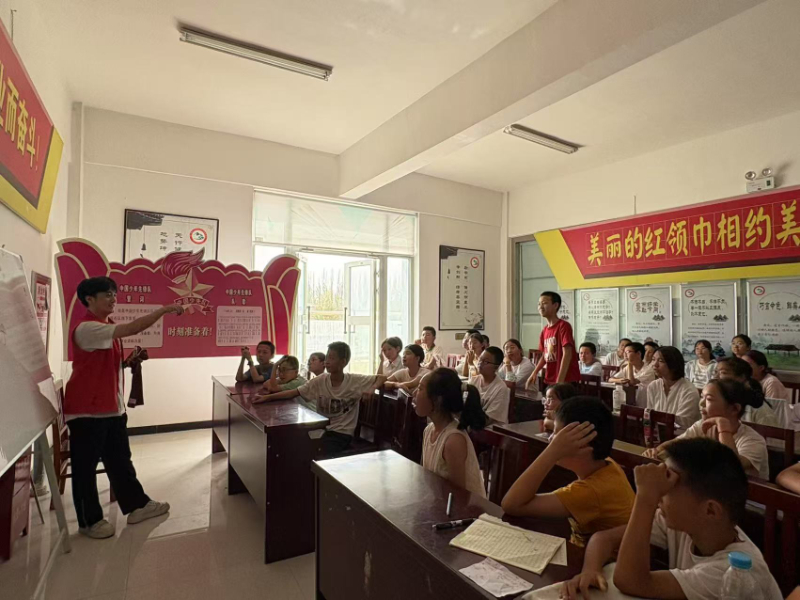 (圖為實(shí)踐團(tuán)隊(duì)成員組織開(kāi)展科技知識(shí)小課堂 穆妮賽·玉蘇甫江 供圖)