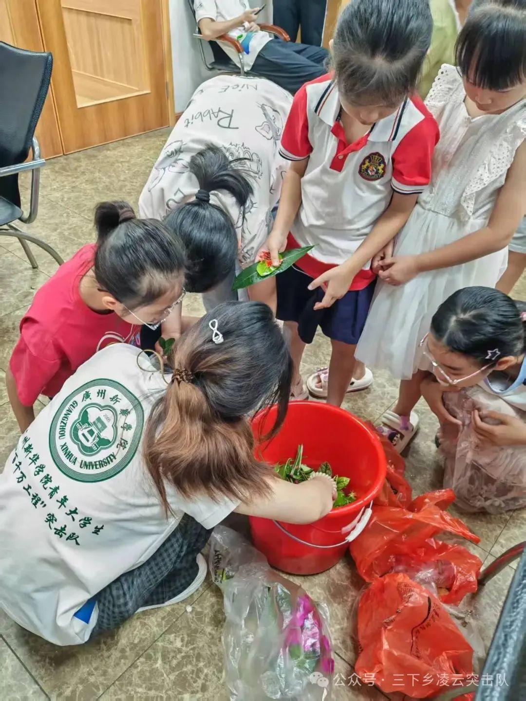 7月20日的上午,陽光正好。小朋友們捧著自己搜集的樹葉、花兒,像捧著一整個夏天的驚喜。凌云突擊隊的成員們早已備好鹽水,將花葉浸泡15分鐘——這是讓自然饋贈更“聽話”的小秘密。