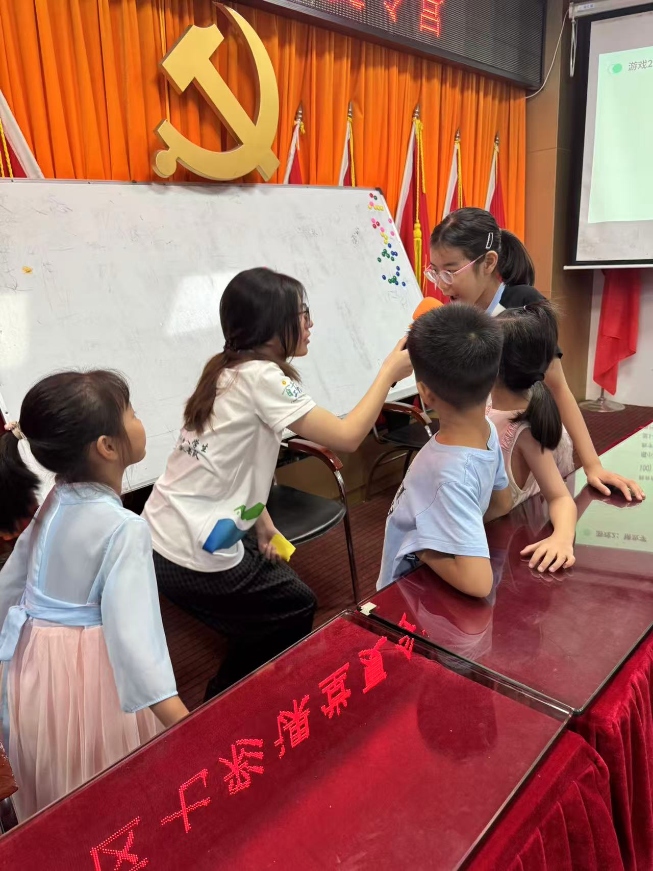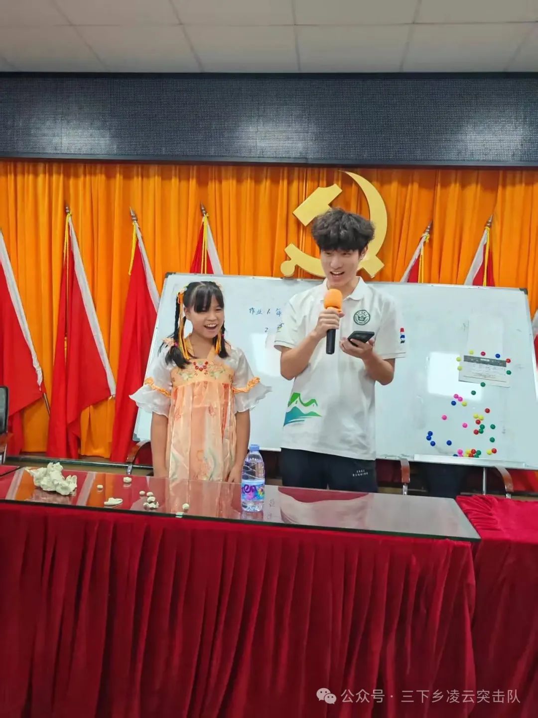 時間總在歡笑中溜走,下午的結營儀式帶著淡淡的不舍。副隊站在臺前,聲音里藏著溫柔:“五天太短,剛記住你們的名字就要說再見;五天又太長,足夠我們把彼此的樣子刻進心里。”他分享的那句“人生這條路很長,未來如星辰大海般璀璨”,像一顆種子落在孩子們心里。對接的負責人握著隊員的手連聲道謝,學生代表搶過話筒:“我們學會了拓染,更學會了一起玩、一起笑!”隊長的祝福視頻亮起時,有個小姑娘悄悄拽了拽隊員的衣角:“老師,你們還會來嗎?”