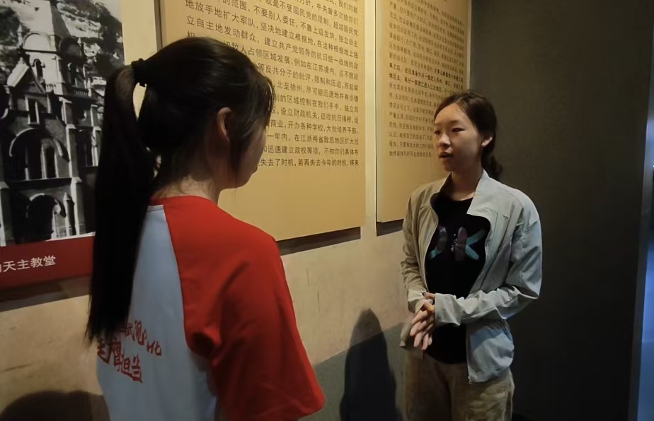“您好,我是‘鐵軍紅跡青年說’實踐團的,想聽聽您參觀后的感受可以嗎?”在展廳的休息區,實踐團成員主動與游客攀談。一位學生感觸道:“黃橋戰役里的‘紅色精神’,其實就藏在日常的‘堅持’與‘助人’里。當年戰士們絕境中不放棄的韌勁太打動人了——對我們來說,就是備考時不偷懶、遇難題不逃避,同學有困難時像戰士幫老鄉那樣搭把手,把這些小事做好,就是傳承吧!”這番話讓團隊成員深深觸動:紅色精神的傳承從不是少數人的“宏大敘事”,而是每個人用行動壘起的高塔。當年輕人在生活中踐行“堅韌”與“奉獻”,紅色基因便有了生生不息的生命力。