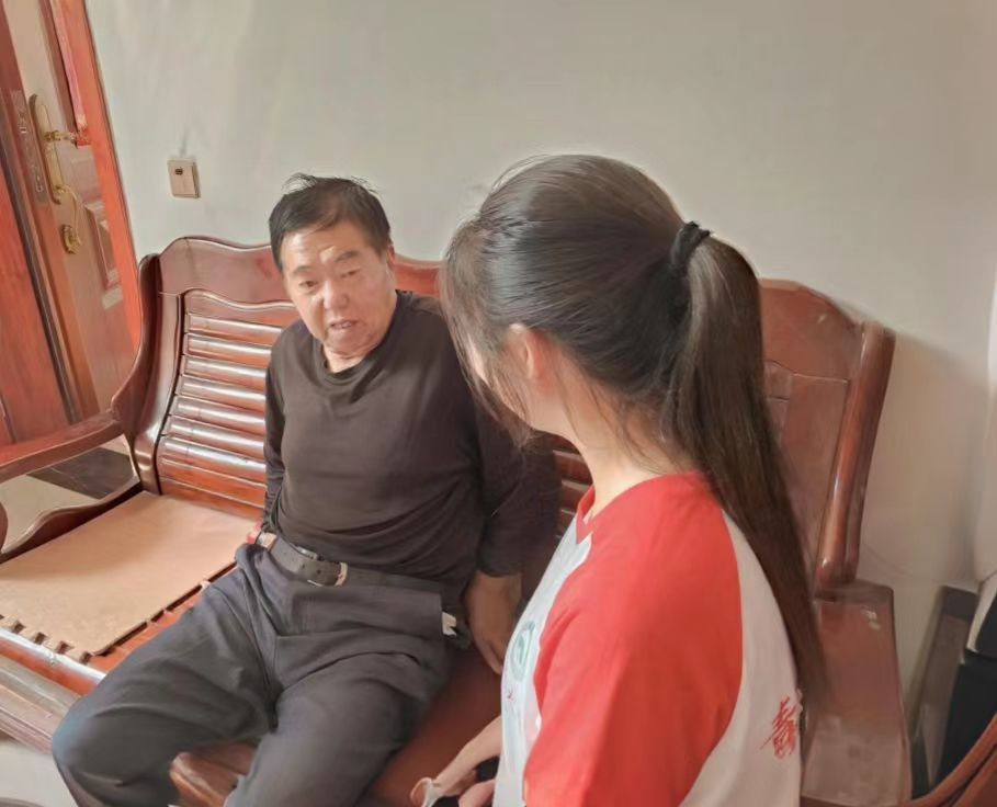 (圖為團隊成員正在采訪參觀者) 當天下午,實踐團成員還走訪了居住在紀念館附近的革命老兵陳爺爺。老人雖聽力漸弱,但回憶起當年的戰斗歲月,眼神依舊明亮。他講述了新四軍戰士在缺衣少食的條件下,如何憑借堅定信念堅守陣地,如何與當地群眾并肩作戰、互相扶持的故事。當被問及對年輕人的期望,老人擺擺手:“不用做驚天動地的大事,把書讀好、把日子過好,遇到困難別退縮,對身邊人多幫襯,這就是把新四軍精神傳下去了。”樸實的話語里藏著最真摯的期盼,讓團隊成員瞬間讀懂了傳承的真諦:紅色精神從不是博物館里的陳列,而是融入日常的行動與堅守。