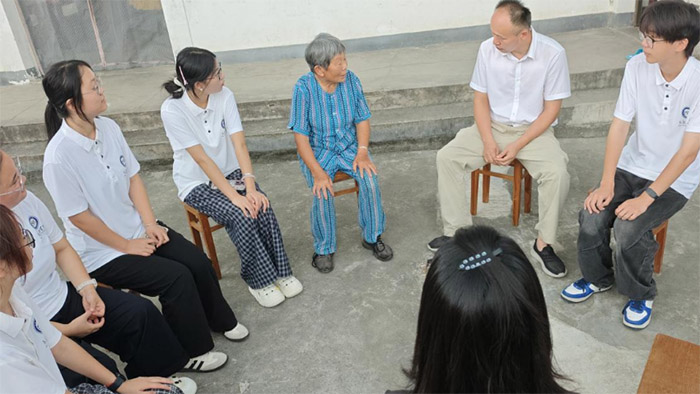 紅色追尋:印記于心礪壯志,情懷家國植厚土 “紅軍北上抗日先遣隊在皖南留下了哪些戰斗足跡?”“改革開放以來,中墩村發生了怎樣的變遷?”帶著這些問題,實踐團走進譚家橋鎮紅軍北上抗日先遣隊紀念館,通過瞻仰革命文物、聆聽英雄事跡,重溫皖南地區的革命斗爭史,感悟革命先輩“為國犧牲、矢志不渝”的堅定信仰。在聶家山老黨員家中,團員們開展“口述歷史”訪談,74歲的老黨員程水龍(1951年出生,1969年入黨)摩挲褪色黨徽,回憶之前冒雪送前線物資的經歷,緊握雙手道出“黨員的命是老百姓的”的初心,還捧出珍藏黨徽叮囑傳承精神,并帶領參觀聶家山紅色展陳館,臨別囑托守護文化根脈、肩負復興使命。老人的講述與囑托,讓紅色基因深植學子心中,成為新時代奮進的精神動力。