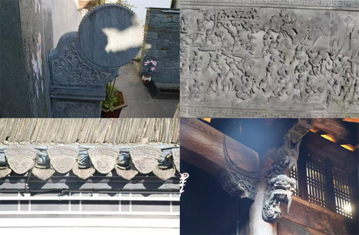 8月12日掛牌儀式后,實踐團在學院黨總支書記鄭選斌、輔導員楊文鈺帶領下,探訪徽派古建筑,在解說員的引導下細品徽派建筑標志性非遺技藝--“三雕”(石雕、磚雕、木雕):門旁抱鼓石的石雕卷草紋流暢有力,照壁上的磚雕山水人物鮮活呈現古時生活,梁柱間的木雕龍頭傳神靈動,每一處紋路都訴說著徽州人對吉祥的向往與對生活的熱愛。