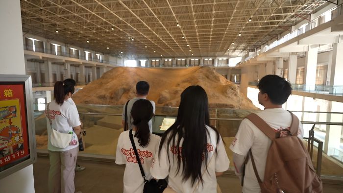 實踐團(tuán)學(xué)習(xí)北庭故城遺址文獻(xiàn)資料。黃嘉穎供圖