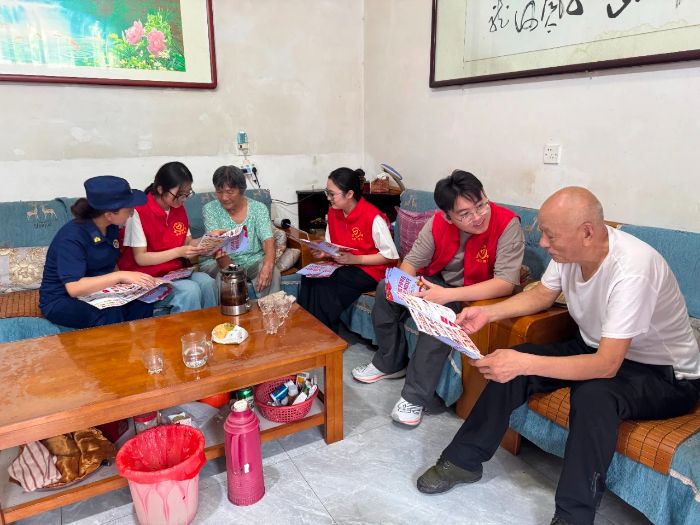 8月4日,實踐團成員參加了交通局和消防局的聯合安全宣傳活動。成員與消防宣傳員一同走進沿街商鋪、走入居民家中,用“邊宣傳邊教育邊勸改”的方式,幫助商戶、居民了解場所火災危險性,并向大家講解滅火器的使用方法,如何正確用火、用電、用氣,如何逃生自救等消防安全知識。