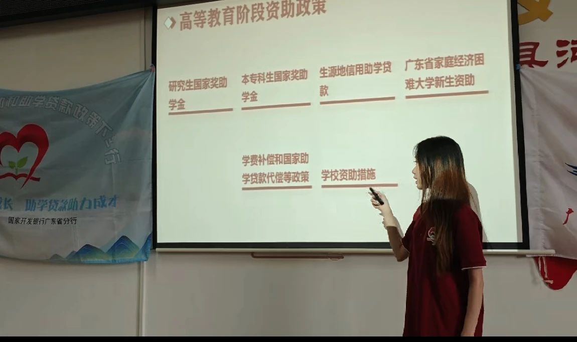 團委“搭把手”:從籌備到現場全程添力 這場宣講活動的順利開展,離不開基層組織的有力支撐。頭日宣講時,云浮市新興縣河頭鎮團委便親臨現場指導工作。鎮團委的陳潔琪、梁銘銘兩位同志不僅帶來了基層工作的實踐經驗,更聚焦兩大核心方向,即提升宣講效果與助力后續收尾,為活動“把脈定向”。考慮到東揚隊學生團隊對基層實際情況的了解存在局限,兩人立足云浮鄉村家庭的真實處境,對申請條件中的家庭經濟困難認定標準,以及辦理流程中的材料提交、審核節點等關鍵環節進行了補充說明,有效彌補了學生團隊在政策解讀專業性上的潛在不足。值得關注的是,這份支持并非局限于宣講會現場。早在活動籌備階段,陳潔琪、梁銘銘便主動參與前期保障工作,不僅高效解決了宣講會場地供給問題,更通過村微信群、村委廣播等渠道,精準篩選出有資助需求的學生家長群體,逐戶通知參與,從源頭上保障了宣講會的參與度與針對性。