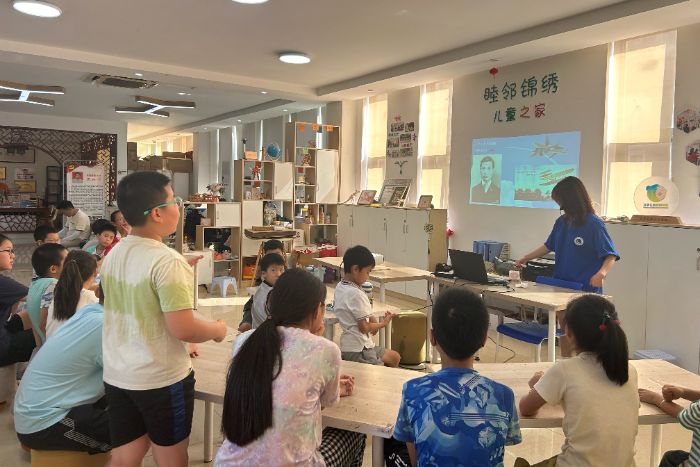 圖為社區(qū)青少年回答團隊成員提問。李艾蕓攝