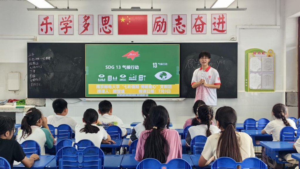 為響應聯合國開發計劃署與中國大學生知行促進計劃共同發起的Movers4Climate綠色鄉村青年行動,推動鄉村可持續發展與環保教育,彌合教育鴻溝,2025年7月7日至25日,南京郵電大學“七彩假期情暖童心”志愿服務團隊深入江蘇省宿遷市泗洪縣車門鄉與石集鄉開展暑期實踐活動。