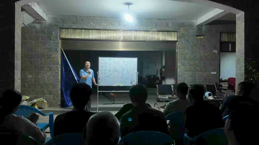 下午,實(shí)踐隊(duì)借助抖音平臺(tái)開展線上直播教學(xué),聚焦普通話基礎(chǔ)發(fā)音與日常用語,通過實(shí)時(shí)互動(dòng)講解、示范朗讀等方式,為村民提供便捷的學(xué)習(xí)渠道。直播過程中,村民們踴躍提問,隊(duì)員逐一答疑解惑,并結(jié)合當(dāng)?shù)胤窖蕴攸c(diǎn),針對(duì)性糾正發(fā)音問題。直播結(jié)束后,累計(jì)吸引超30人參與學(xué)習(xí),線上教學(xué)成效顯著。與此同時(shí),隊(duì)員們繼續(xù)巡村通知,動(dòng)員村民參與當(dāng)晚的線下教學(xué)活動(dòng),確保推廣覆蓋無死角。