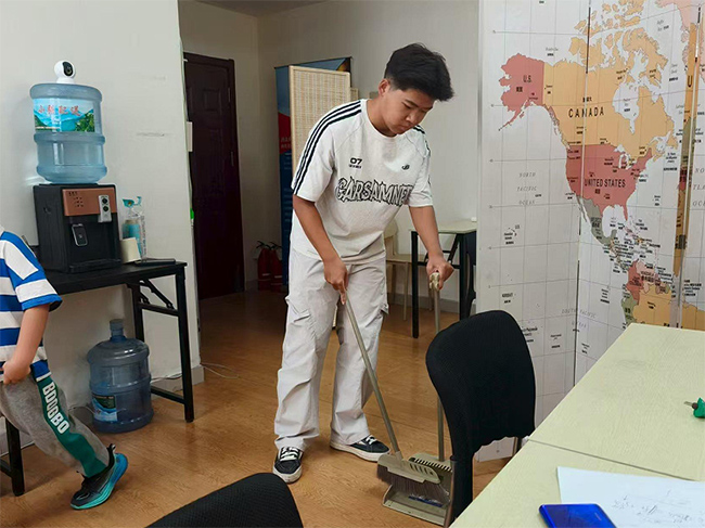 在實踐期間,團隊成員深入“濱濱學堂”開展兒童教育幫扶,剛進入到社區的教師中,同學們滿懷熱情的看著志愿者老師,臉上洋溢著笑容,志愿者帶領社區兒童進行手工制作與課業輔導,通過互動游戲激發學習興趣,同時維護教室衛生;在學堂期間的課余時間里為學生們分發酸奶、水果等下午茶,并在“濱濱學堂”中負責保證學生們的安全和拍攝工作。