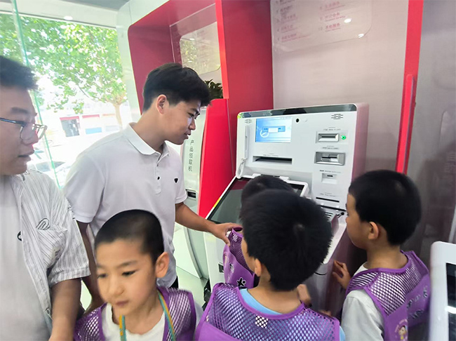 實踐收官階段,志愿者協同當地銀行精心策劃的“小小銀行家”金融之旅熱鬧開啟!從辨認錢幣到學習點鈔神功,再到親手操作自助機器,孩子們在歡聲笑語中探索奇妙的金融世界。活動為每位小朋友頒發了證書和知識繪本,將這趟關于財富與成長的啟蒙課,變成一份珍貴的童年禮物。