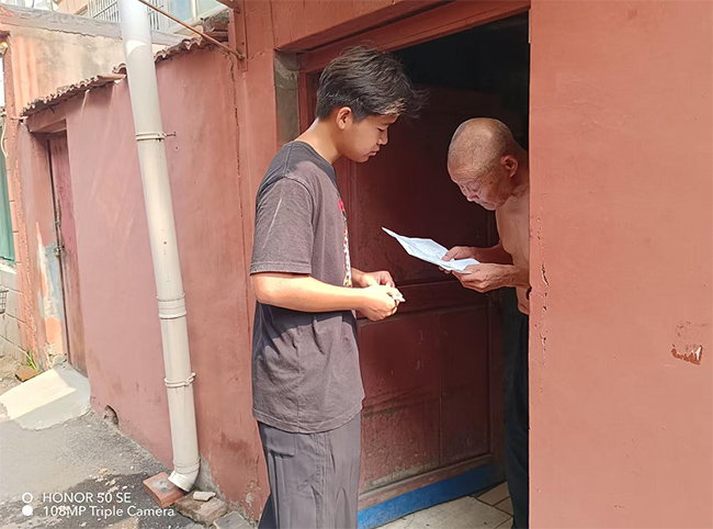 同步參與社區環境衛生整治,清理公共區域雜物,擦拭設施設備;團隊分組走訪東城社區30余戶家庭,重點關注老年群體需求。在獨居老人王大爺家中,志愿者協助整理藥品清單并安裝防滑設施;于退伍軍人李爺爺處記錄其對社區醫療服務的改進建議。