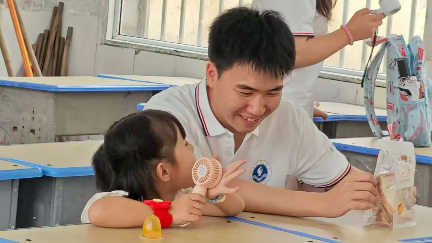圖為最后一堂課,志愿者在教室里輔導同學完成暑假作業,助力他們鞏固知識。通訊員汪永站 攝