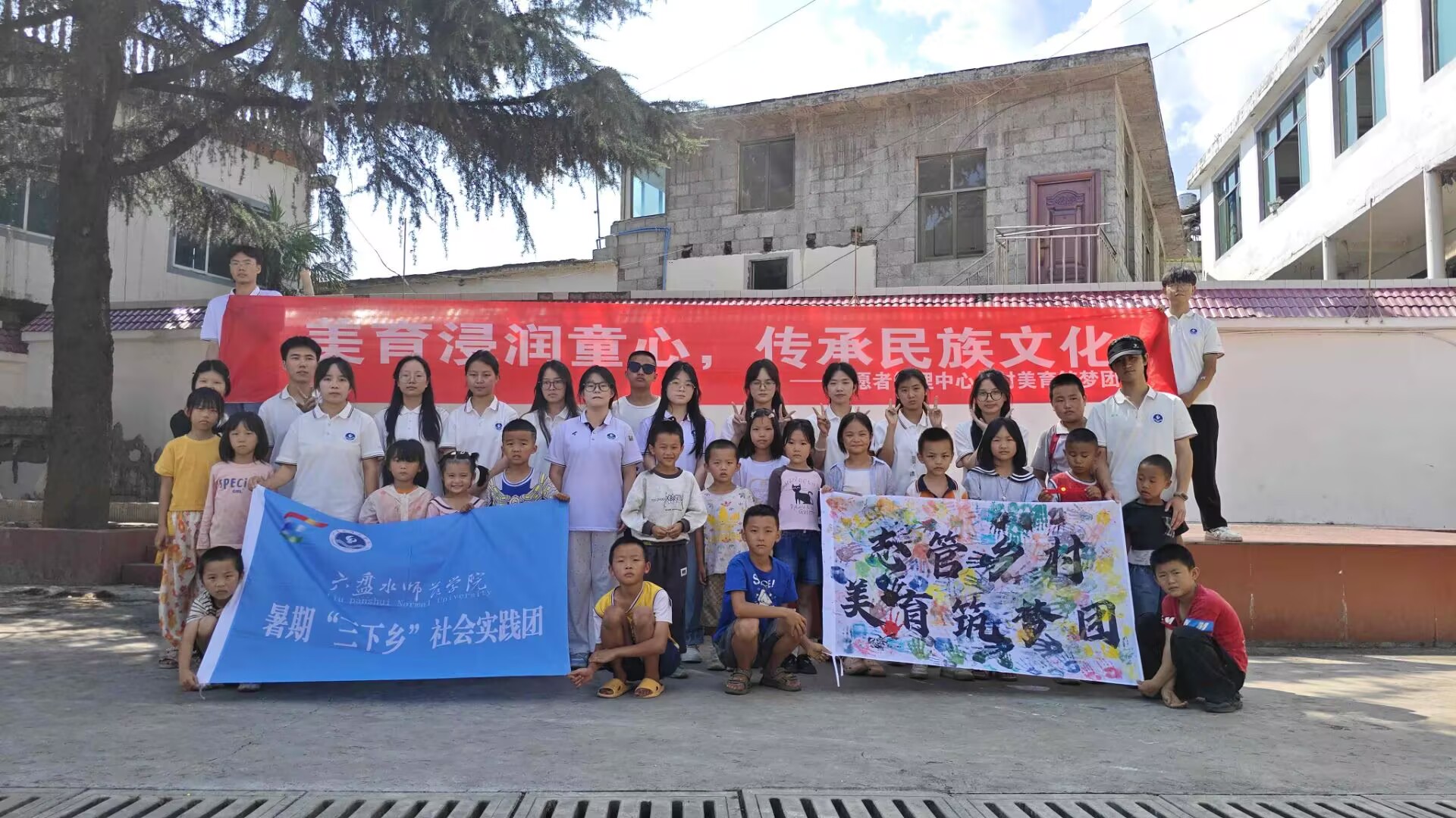 圖為活動結束時,鄉村美育筑夢團與學生一起開心合影,記錄下這美好的瞬間。通訊員汪永站 攝