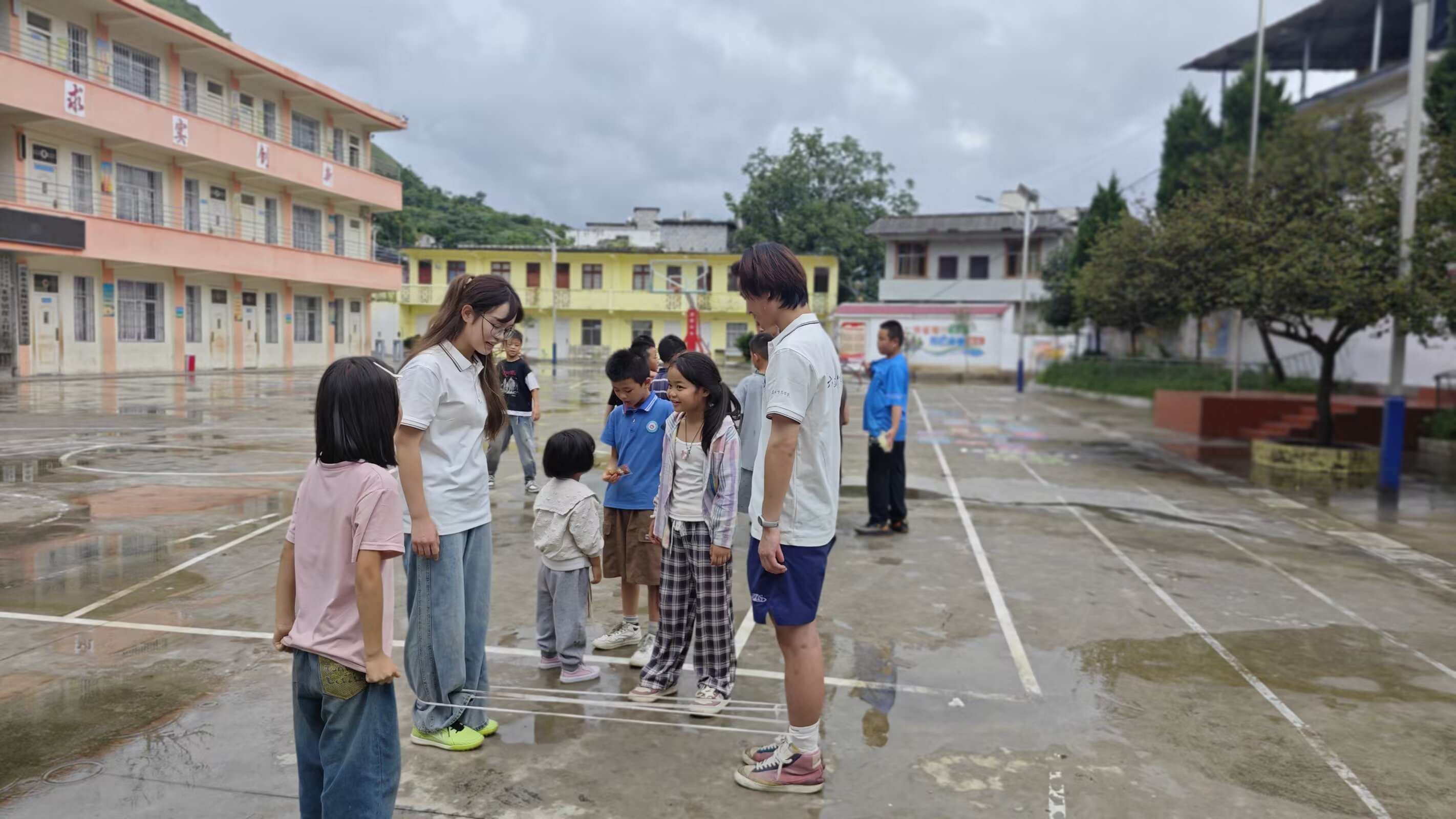圖為課間時分,志愿者與同學嬉戲,玩得不亦樂乎。 通訊員胡海軍 攝