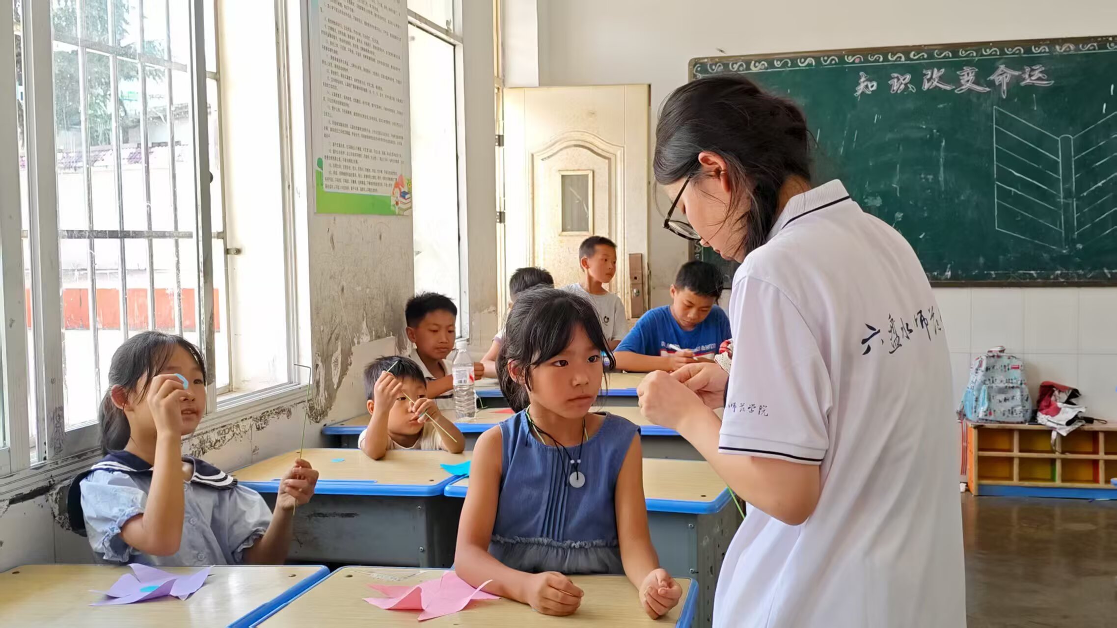 為更好的踐行國家政策,促進鄉村振興,提升鄉村教育質量。7月21日,六盤水師范學院校團委志愿者管理中心組織了“鄉村美育筑夢團”支教團。團隊以“美育浸潤童心,傳承民族文化”為核心,在水城區米籮鎮倮么小學開展了一系列三下鄉支教任務。團隊成員利用專業知識為學生答疑解惑,也開展了許多有趣的如體育、繪畫、手工等課程。期間,團隊還對學生家庭情況進行了解,更好的對學生進行因材施教。此外,團隊還了解到當地少數民族布依族的相關歷史與服裝特色。(通訊員 李慧)