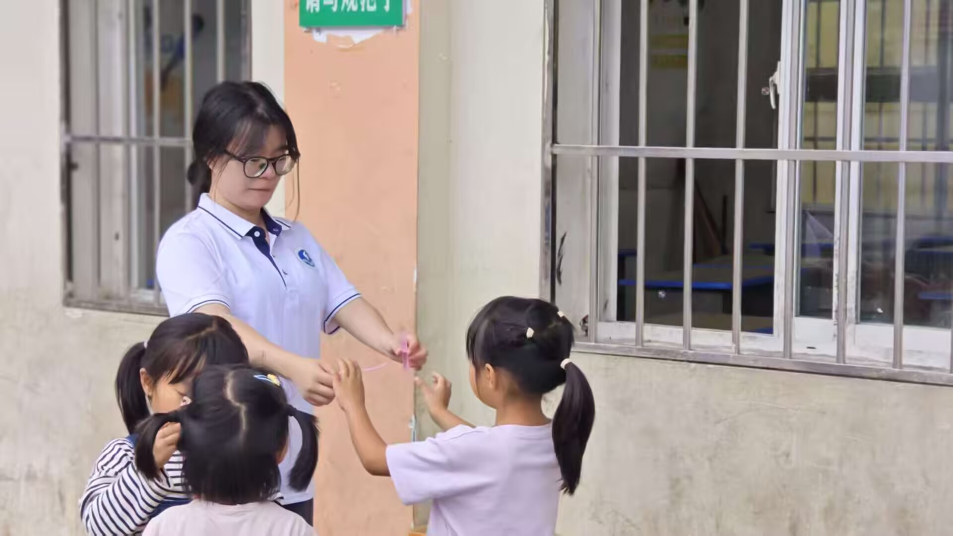 圖為細心的志愿者主動走到小同學身邊溫柔地照顧著她。 通訊員李華歡 攝