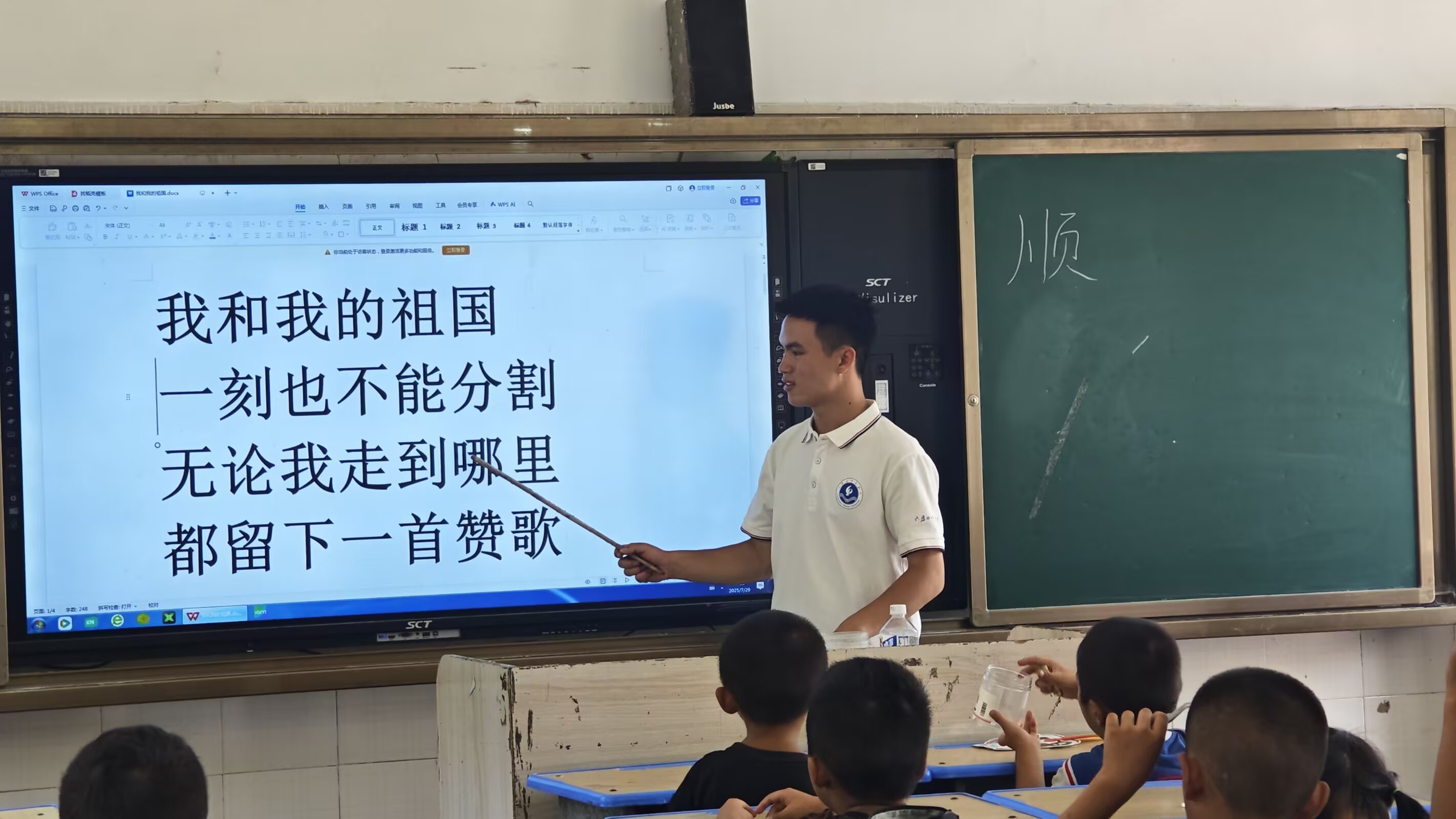 圖為音樂課上,志愿者帶領同學們演唱著充滿家國情懷的歌曲,歌聲激昂而深情。 通訊員李慧 攝