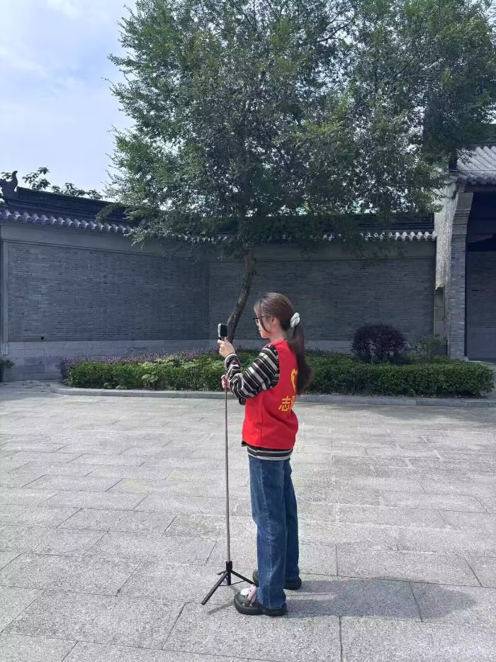 南京太仆寺遺址是小分隊(duì)實(shí)踐的另一重要場域。成員張子玄架起設(shè)備,聚焦古建筑的一磚一瓦,從建筑結(jié)構(gòu)、雕刻細(xì)節(jié)入手,拍攝太仆寺的歷史風(fēng)貌,記錄陽光灑在古墻上的光影,捕捉游客駐足參觀的瞬間。