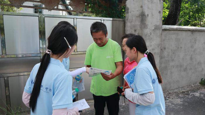 在重走甘祖昌將軍曾帶領村民修建水庫的道路時,隊員們手持推普材料,主動與沿途村民交流,一邊聆聽紅色往事,一邊細致詢問村民日常使用普通話的頻率、交流中遇到的困難、學習普通話的意愿及偏好方式等。在傍晚的鄉村巷陌間,隊員們以“流動教學點”形式發放調查問卷,針對不同年齡段村民的語言使用習慣和學習需求展開深入了解,遇到村民研究問卷時,隊員們順勢進行易錯發音指導,在自然互動中完成語音示范與微調。