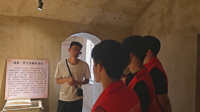 參觀尾聲,解說員帶領團隊走進還原度極高的農墾戰士生活場景區,織草鞋、打豆腐、自家釀酒等生動場景,讓隊員們仿佛身臨其境,真切體會到老一輩農墾人在艱苦環境下的生產生活狀態與頑強拼搏的意志品質。當學習到王震將軍1950年初“人民解放軍不僅是一支國防軍,而且又是一支生產軍……新疆軍隊參加生產建設不是臨時克服困難,而應該從長期生產建設的觀點出發……新中國的屯墾事業是子子孫孫的建國事業”的動員講話時,隊員們深受震撼,愛國情懷與胡楊精神在心中進一步升華。