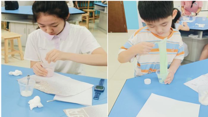 孩子們正做起泡膠中。鄭芯茹攝 從隱形密信的解密到材料特性的探索,這些簡單易操作的實驗,將化學原理與動手樂趣巧妙結合。抽象的科學原理便轉化為可觀察、可感知的具象現象,使科學從書本上的理論知識,轉變為可參與、可驗證的實踐過程。它們不僅能讓我們直觀感受科學的魅力,更能激發探索未知的好奇心。不妨動手嘗試,在這場奇妙的科學之旅中,發現更多隱藏在日常中的奧秘。