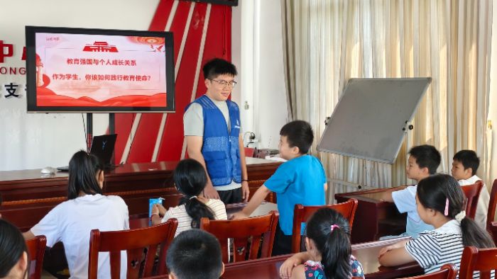 三、了解時下政策,同心助力振興 7月24日志愿服務(wù)隊圍繞習(xí)近平總書記關(guān)于教育的重要論述,開展三場主題宣講,分別以“科教興國戰(zhàn)略”“扶貧必扶智”和青年寄語為核心,通過政策解讀、案例展示和互動討論等形式,重點闡釋教育振興與二十大精神的關(guān)系、教育惠民政策成效及青年支教作用,并在鳳山縣中亭村邀請聽眾分享體會,激發(fā)青年投身鄉(xiāng)村教育,助力實現(xiàn)2035教育現(xiàn)代化目標(biāo)。