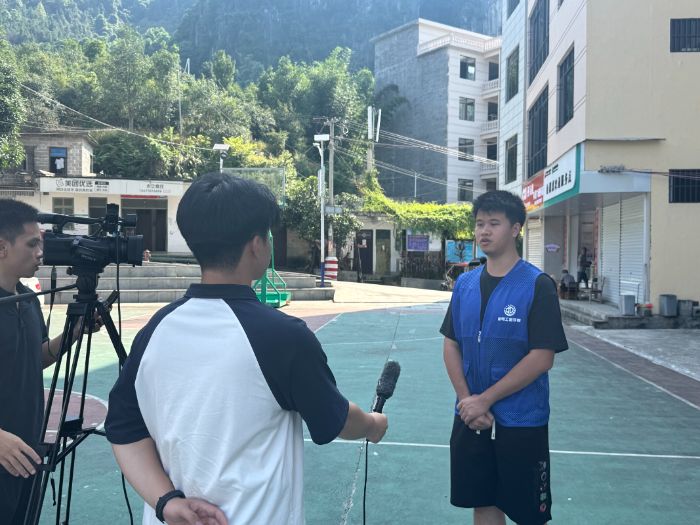 八、鳳山訪談,迷彩青春 7月29日志愿服務(wù)隊在鳳山縣中亭村接受鳳山縣融媒體中心采訪:首先圍繞國防教育活動開展情況進(jìn)行深度訪談,講述活動籌備細(xì)節(jié)并分享實施感悟,通過案例講述展現(xiàn)活動實效,傳遞“以行踐教”的服務(wù)理念;邀請參與學(xué)生分享活動收獲;最后拍攝活動精彩瞬間回顧,包含宣講會互動、討論交流、軍事技能實踐等畫面。