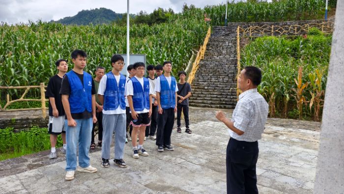 四、“鄉(xiāng)音・鄉(xiāng)情・鄉(xiāng)教”鄉(xiāng)村教育體驗日 7月25日,志愿服務(wù)隊在鳳山縣中亭村開展"教育薪火傳承"主題系列活動:首先邀請當(dāng)?shù)刂v解員講述當(dāng)?shù)馗锩幕浑S后組織學(xué)生參與"我眼中的家鄉(xiāng)教育"繪畫手賬創(chuàng)作工坊;最后通過作品分享會展示成果并收集學(xué)生對學(xué)校發(fā)展的建議,形成"聆聽-創(chuàng)作-展望"的完整活動閉環(huán)。