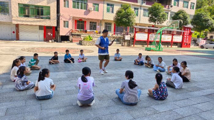 六、童心同行,快樂成長 7月27日志愿服務(wù)隊為促進(jìn)兒童身心健康發(fā)展,培養(yǎng)團隊協(xié)作精神,團隊成員在鳳山縣中亭村精心策劃并組織開展傳統(tǒng)游戲互動活動。本次活動通過寓教于樂的方式,不僅為兒童創(chuàng)造了歡樂的游戲體驗,更在潛移默化中培養(yǎng)了其規(guī)則意識、社交能力和自信心,實現(xiàn)了娛樂性與教育性的有機統(tǒng)一。活動過程氣氛熱烈,參與者互動積極,取得了良好的教育效果。