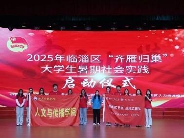 實踐團受邀參加臨淄區“齊雁歸巢”大學生暑期社會實踐活動啟動儀式并作為“三下鄉”暑期社會實踐臨淄行的團隊代表接受授旗。
