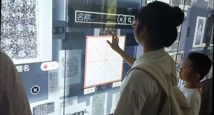 (圖為廣西師范大學桂韻羅盤實踐團成員在桂海碑林體驗碑文電子屏。蔣秋杏供圖)