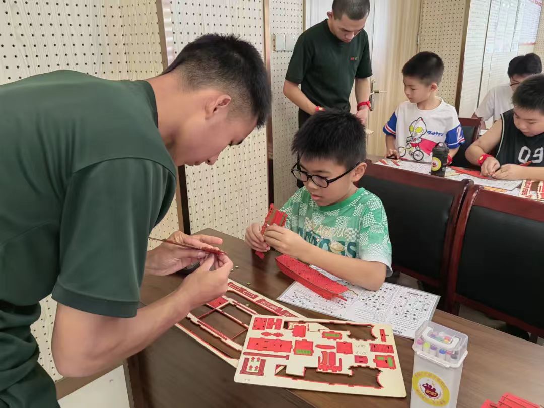 紅色課堂活動圓滿結束后,服務隊成員與小朋友們共同開展了紅船模型拼裝活動。在實踐過程中,同學們積極交流、熱烈討論,紛紛表達自己的體會與感悟。一位同學談到,課堂學習中了解到革命先輩曾乘船在水域環境中與敵人周旋斗爭,而親手拼裝紅船模型的過程,更令人深刻體會到當年艱苦卓絕的斗爭環境與先輩堅定的革命意志;另一位同學表示,端詳最終成型的紅船模型,仿佛看到革命先輩們不畏艱險、奮勇向前的身影,深刻體會到當下幸福生活的來之不易,并表示要更加珍惜現在的生活、努力學習、報效祖國。