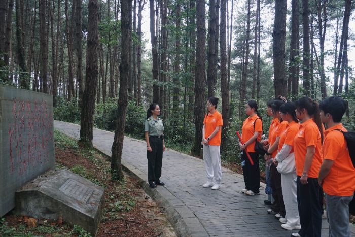 在新廠戰(zhàn)役舊址群,隊(duì)員隨講解員探尋紅六軍團(tuán)在此的歷史脈絡(luò)。眾人首站駐足于“紅軍長(zhǎng)征新廠戰(zhàn)役”石碑前,聆聽(tīng)其所承載的厚重歷史和“血”字石碑的象征意義。講解員指向石碑娓娓道來(lái):“當(dāng)年紅軍戰(zhàn)士在極端惡劣條件下,以鮮血與生命守護(hù)這片土地,這正是他們不屈精神的永恒見(jiàn)證。”
