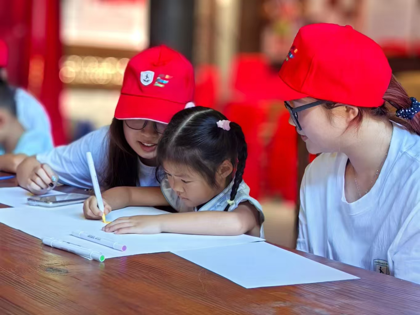 圖為實踐隊成員指導(dǎo)兒童繪畫。供圖 黃語婕
