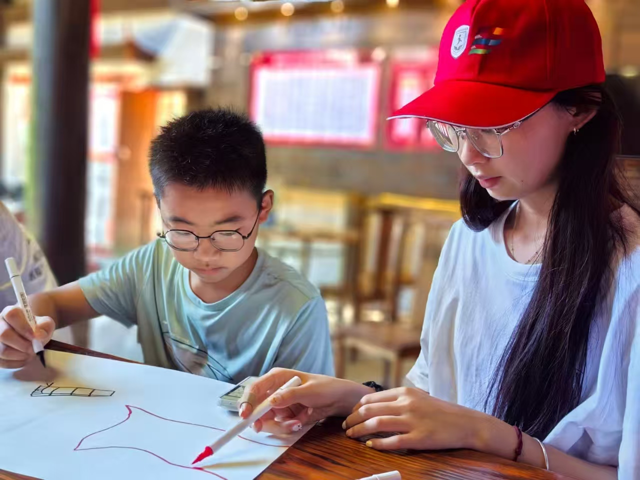 活動中成員們面帶笑容的坐在小朋友身旁,桌上擺著紙與畫筆,小朋友們專注執(zhí)筆創(chuàng)作,成員們溫柔指導(dǎo)、耐心協(xié)助,傳遞知識與溫暖,用藝術(shù)拉近城鄉(xiāng)距離,在鄉(xiāng)村孩童心中撒播美育種子,讓文化下鄉(xiāng)的活力在互動中綻放。這一幕縮影著整個繪畫課堂的靈魂:當(dāng)隊員們以“平視”的姿態(tài)融入孩子的視角,藝術(shù)不再是遙不可及的符號,而是指尖流淌的、觸手可及的夢想。紅帽下的輕聲指導(dǎo),畫紙上的色彩碰撞,不僅定格了美育啟蒙的瞬間,更編織起城市與鄉(xiāng)村、青春與童真的溫暖紐帶——在這個夏日,鄉(xiāng)村孩童眼中的世界,正隨彩筆揮動而愈發(fā)絢爛。每一次耐心的引導(dǎo)、每一個鼓勵的眼神,都承載著對他們的期許,為鄉(xiāng)村兒童教育事業(yè)注入青春力量。圖為實踐隊成員合影。圖為實踐隊成員合影。