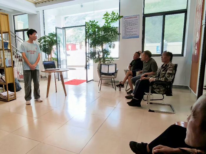 圖為實踐團成員向彝海鎮村民科普災害避險知識