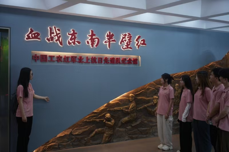 圖5 實踐團成員在北上抗日先遣隊紀念館參觀學習